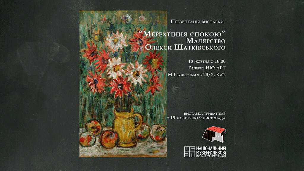 18 жовтня в галереї НЮ АРТ відкриється персональна виставка відомого українського митця Олекси Шатківського (1908–1979), видатного живописця, графіка та сценографа. Шатківський був активним учасником культурно-мистецьких подій Центрально-Східної Європи, членом гуртка «Спокій» у Варшаві та Спілки художників України. Його творчість, що поєднувала національне та європейське мистецтво пізнього модернізму, вирізняється глибоким колоризмом і увагою до простору, світла й кольору. Роботи митця, що охоплюють натюрморти, портрети та пейзажі, відзначаються витонченістю стилю й узгодженістю палітри.