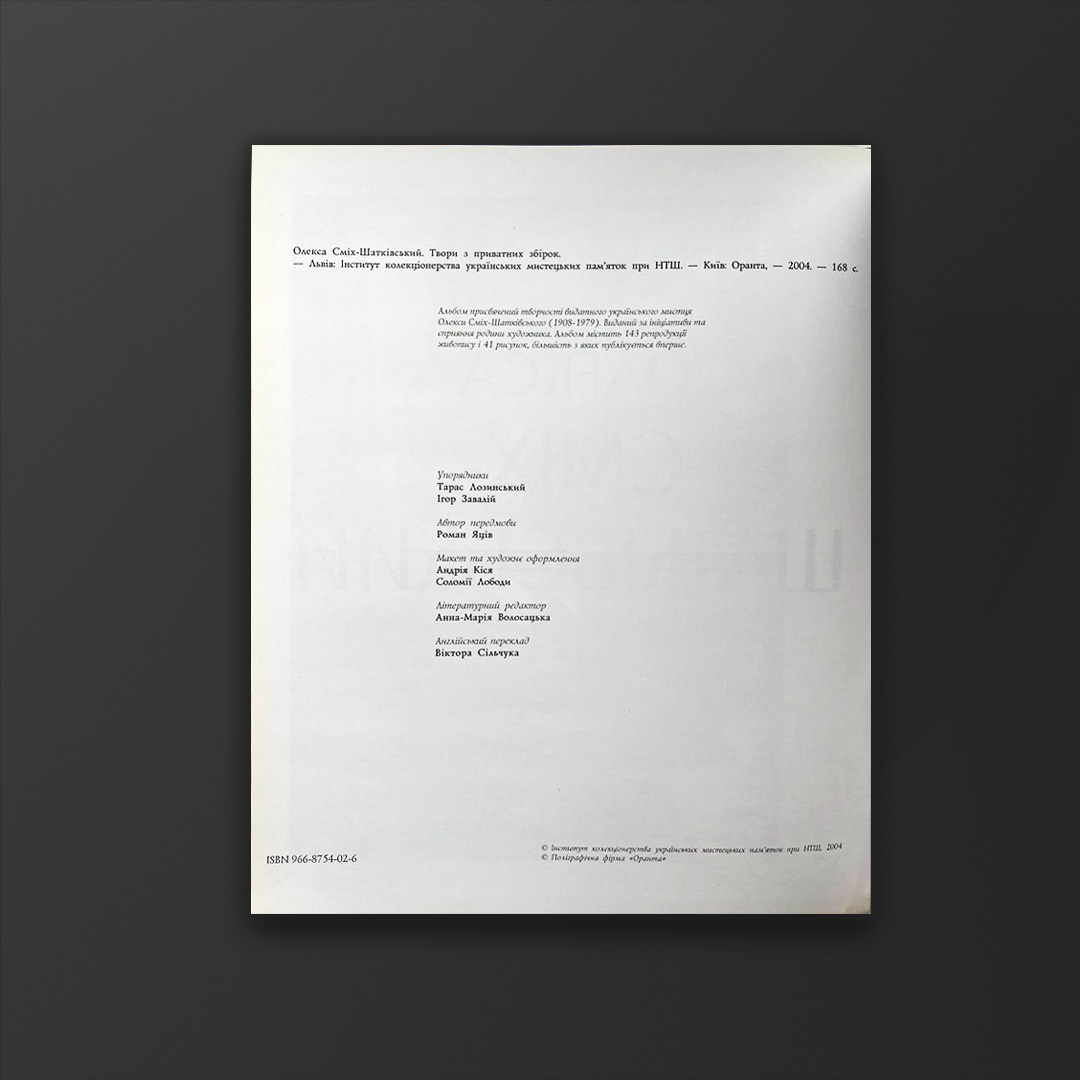 Альбом присвячено творчості видатного українського мистця Олекси Сміх-Шатківського (1908-1979). Виданий за ініціативи та сприяння родини художника.